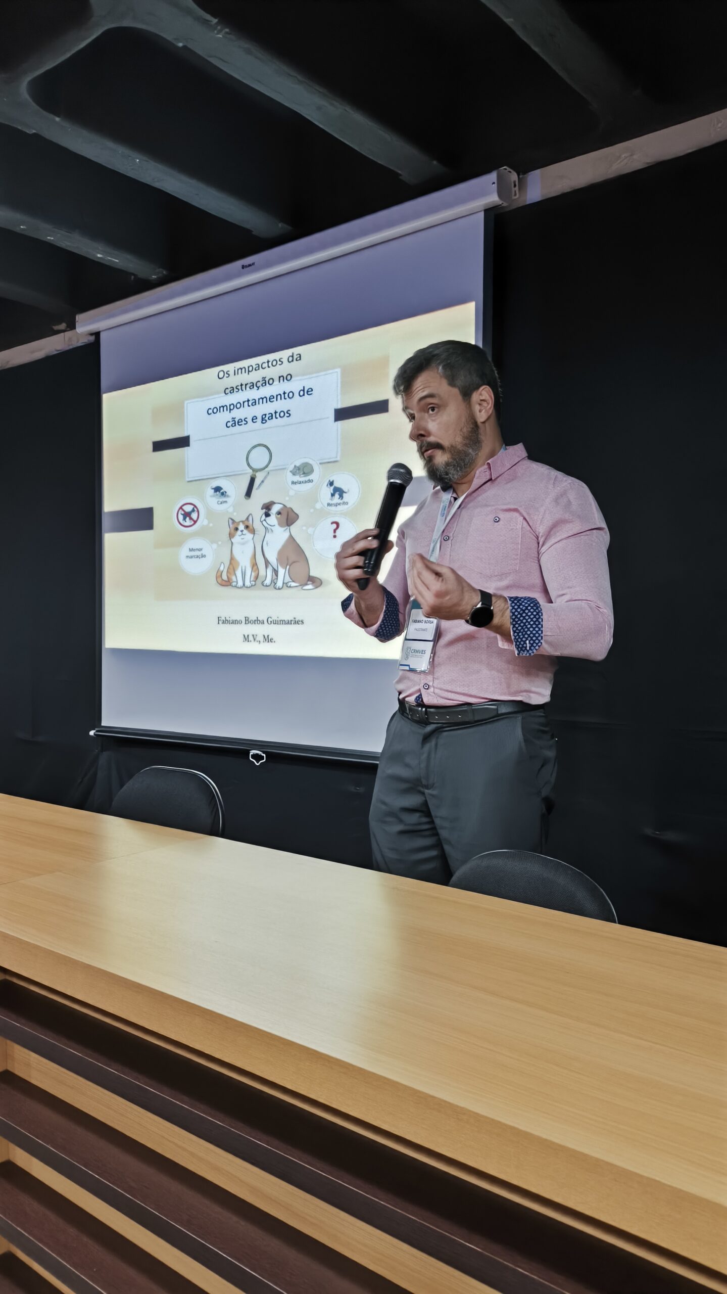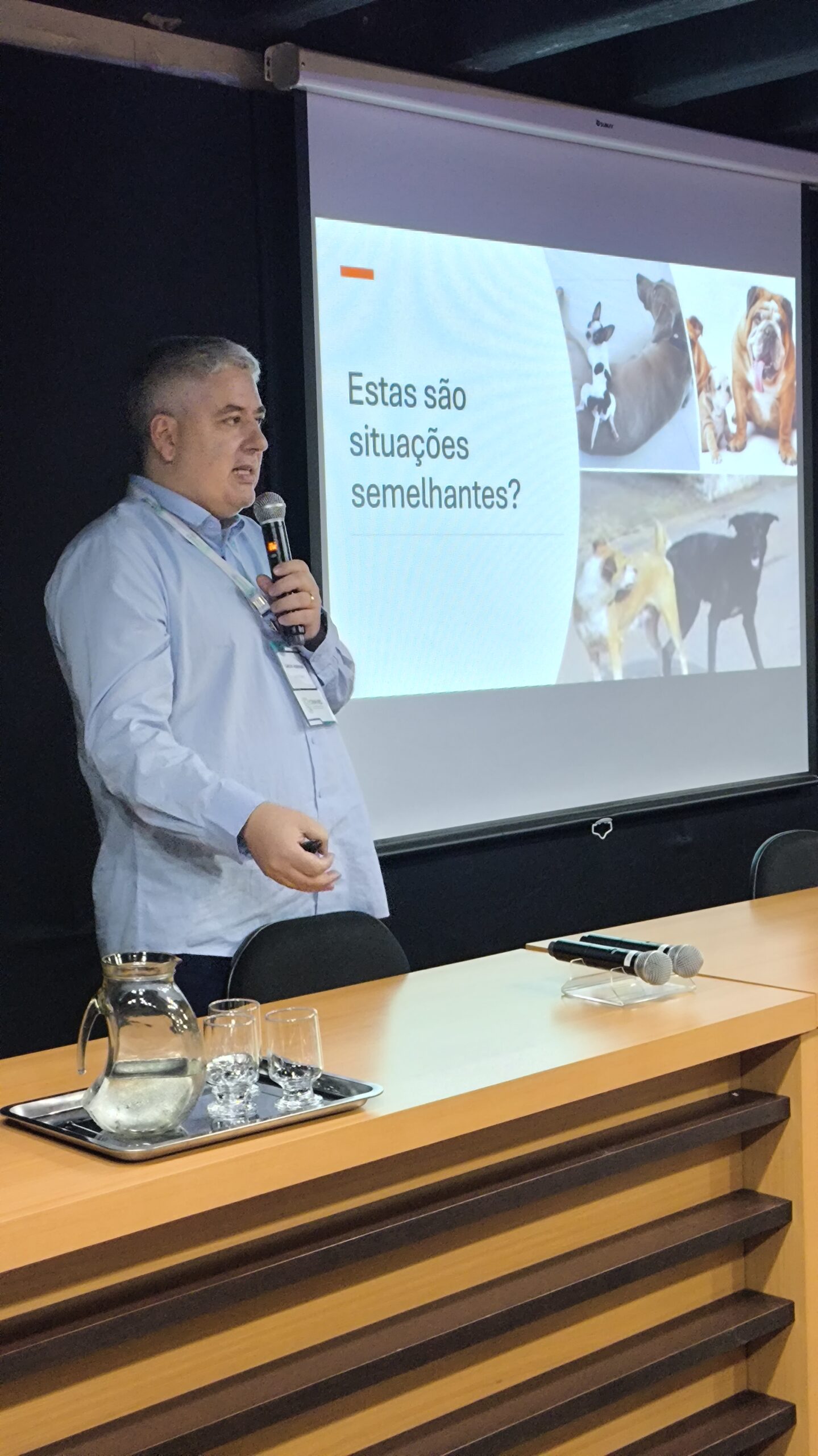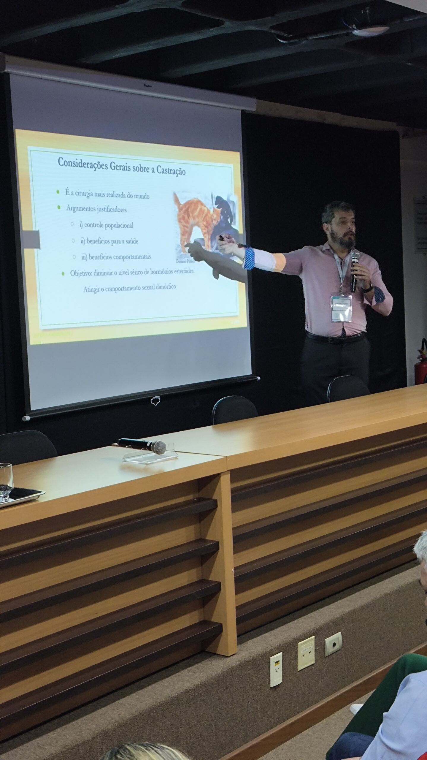 As atividades tiveram início com as palestras do médico-veterinário Daniel Jarrouge, que abordou as inovações nas cirurgias de castração e as indicações e contraindicações do procedimento. “Durante a palestra, apresentei uma reflexão crítica sobre as técnicas cirúrgicas atuais e os avanços disponíveis nas rotinas de castração em cães e gatos, destacando o que realmente mudou e como fazer as cirurgias da forma mais correta. Trouxe também o que permanece inalterado. Outro ponto central da minha apresentação foi a discussão sobre as vantagens e desvantagens da castração, tanto do ponto de vista clínico quanto comportamental e populacional”, relatou.