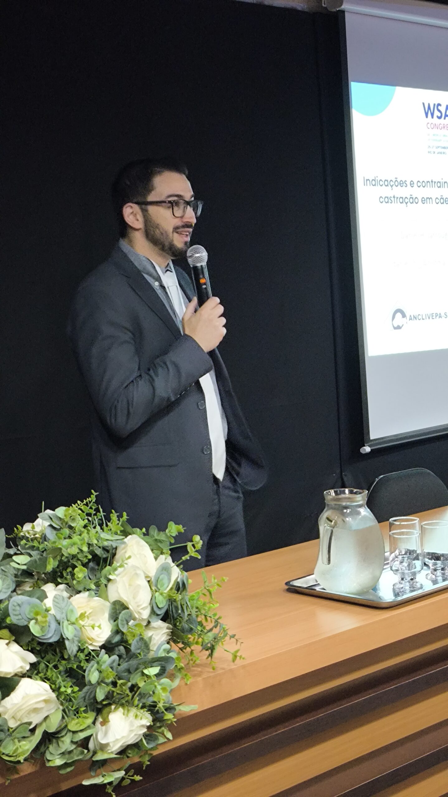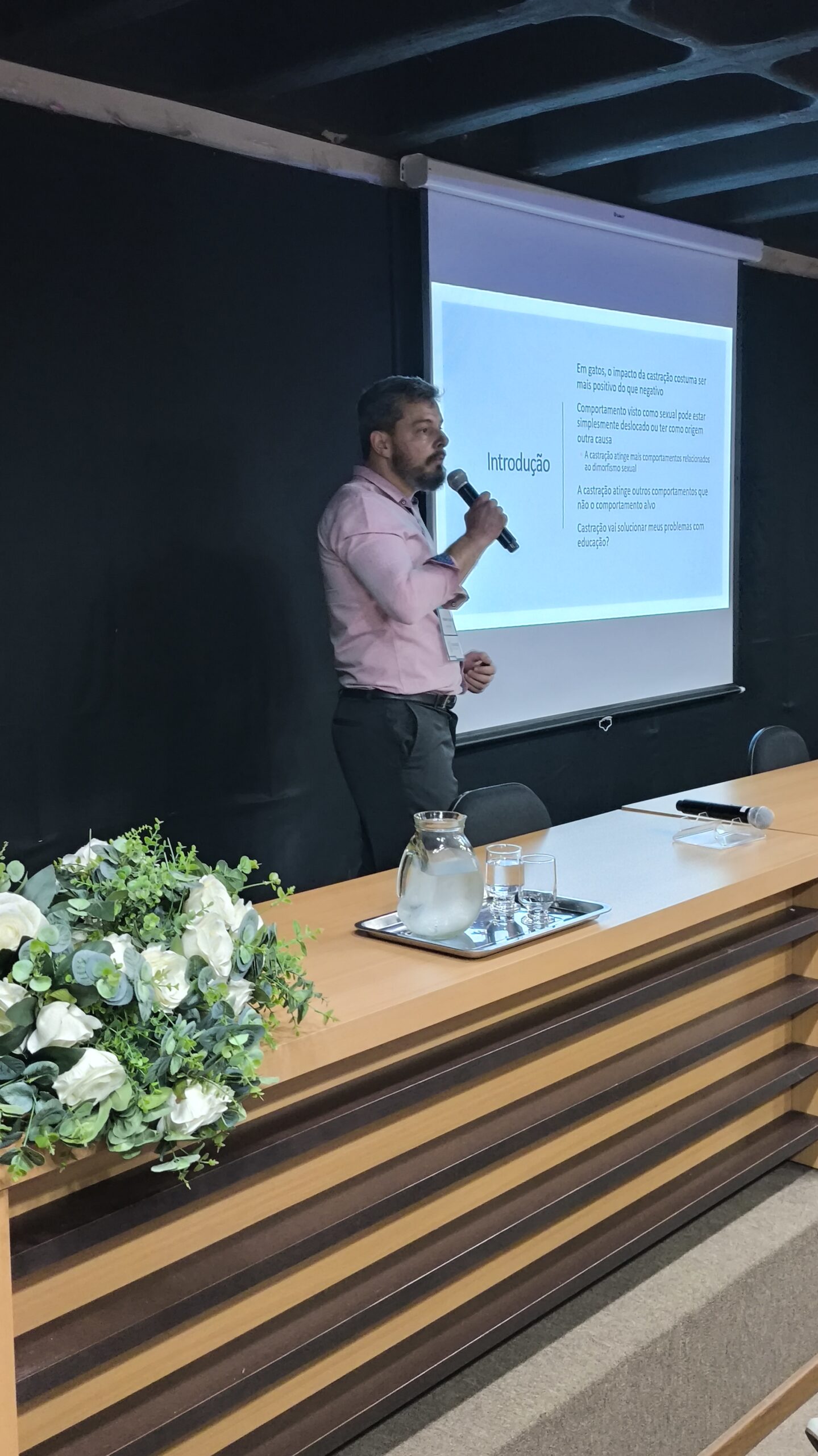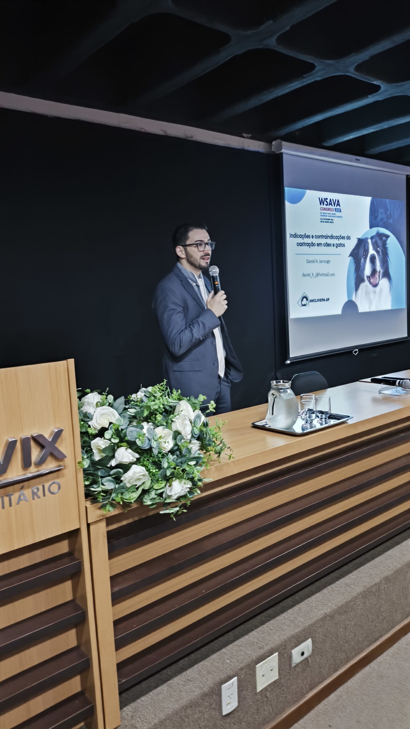 As atividades tiveram início com as palestras do médico-veterinário Daniel Jarrouge, que abordou as inovações nas cirurgias de castração e as indicações e contraindicações do procedimento. “Durante a palestra, apresentei uma reflexão crítica sobre as técnicas cirúrgicas atuais e os avanços disponíveis nas rotinas de castração em cães e gatos, destacando o que realmente mudou e como fazer as cirurgias da forma mais correta. Trouxe também o que permanece inalterado. Outro ponto central da minha apresentação foi a discussão sobre as vantagens e desvantagens da castração, tanto do ponto de vista clínico quanto comportamental e populacional”, relatou.