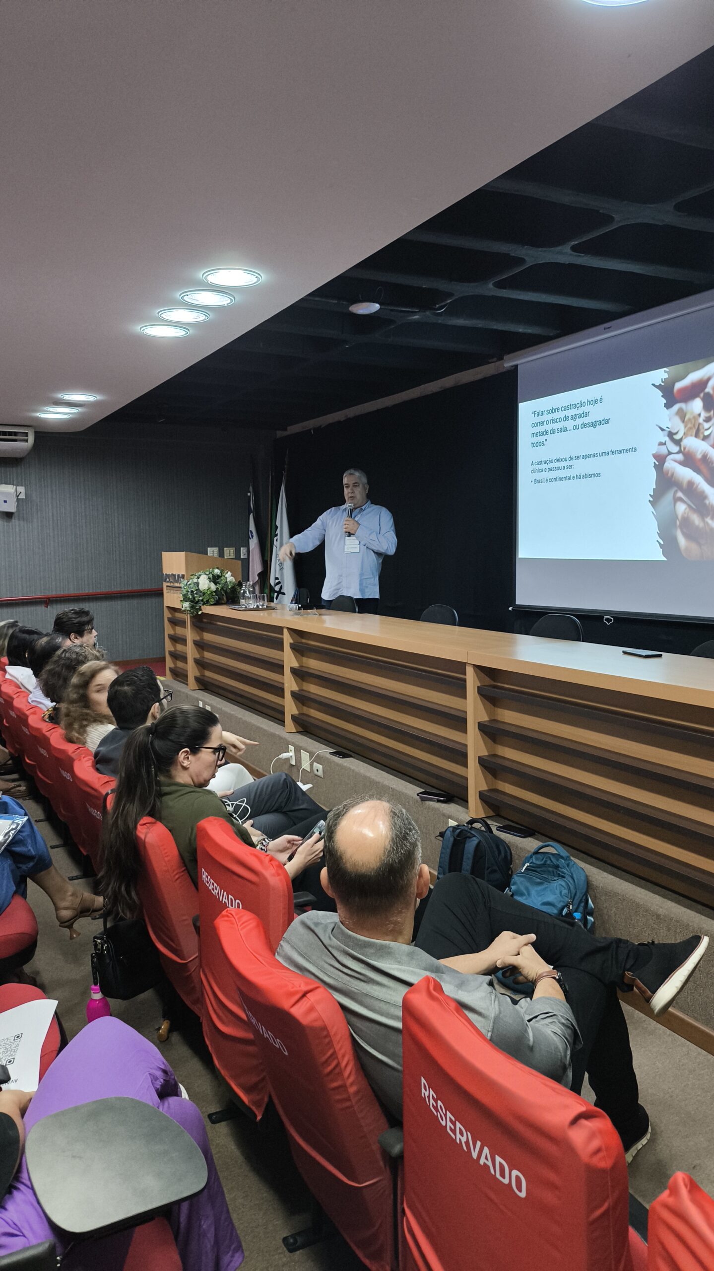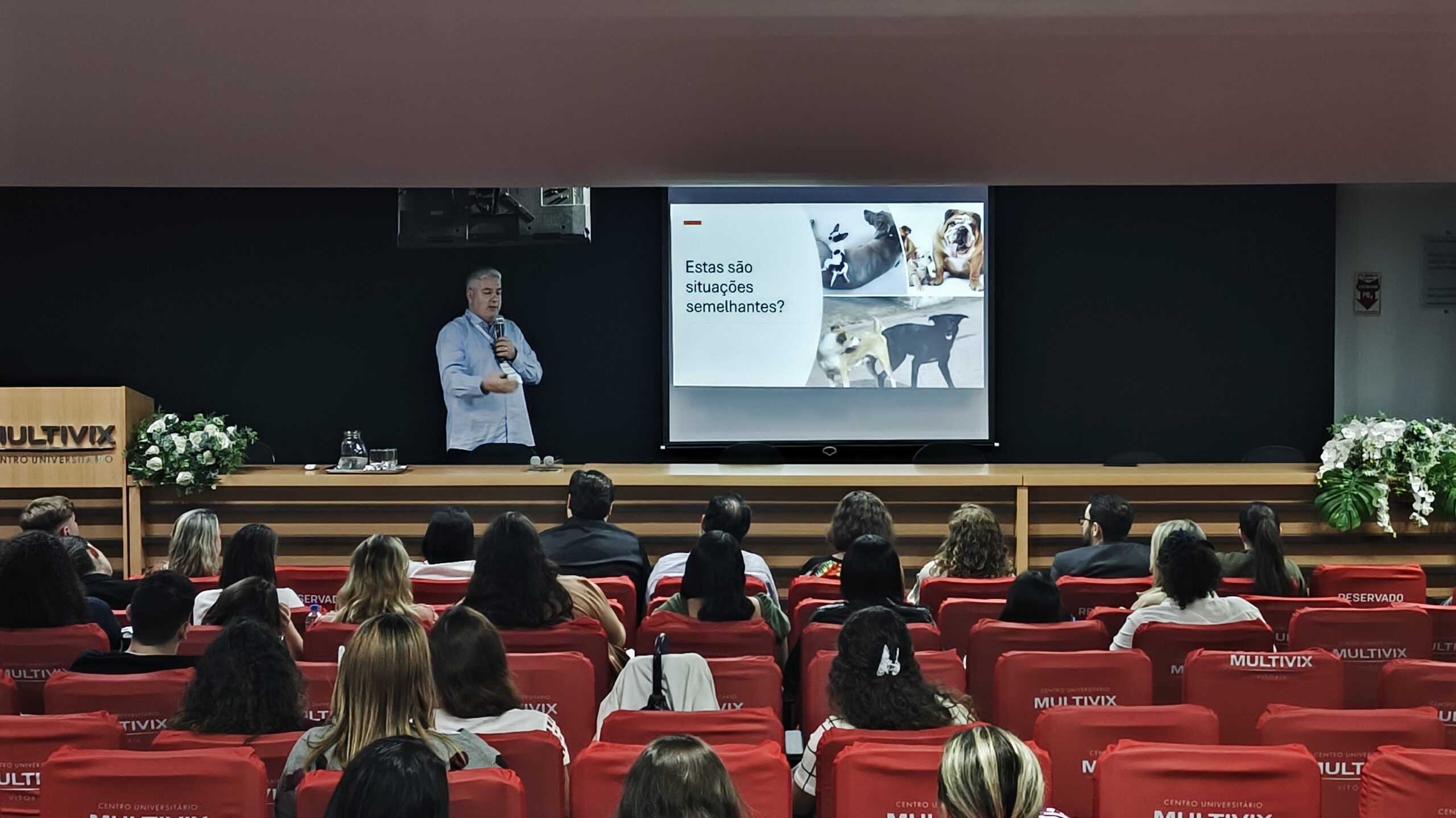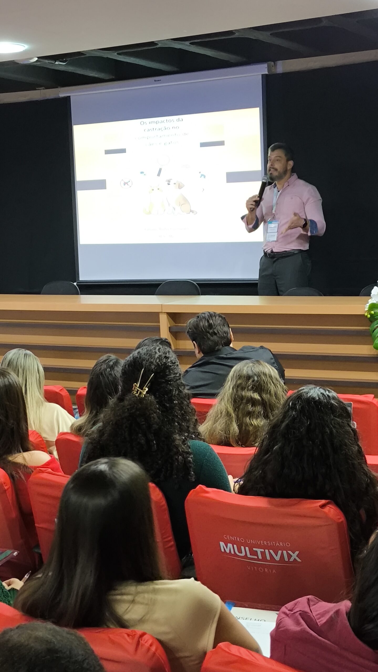 Em seguida, o médico-veterinário Fabiano Borba tratou dos impactos comportamentais da castração e dos mitos associados ao tema, reforçando a necessidade de orientar tutores com base em evidências científicas. Para ele, apesar de ainda existir um longo caminho pela frente, o público se mostrou receptivo às mudanças de paradigmas sobre o tema. “É muito positivo que o CRMV-ES tenha um olhar para áreas essenciais e negligenciadas como a Medicina Veterinária Comportamental. O público se mostrou engajado e participativo durante o evento, levantando questões importantes sobre os impactos comportamentais da castração. Apesar de muitos profissionais ainda carregarem concepções ultrapassadas sobre o uso dessa cirurgia, mostraram-se receptivos ao entendimento das diversas possibilidades de desfechos”, pontuou.