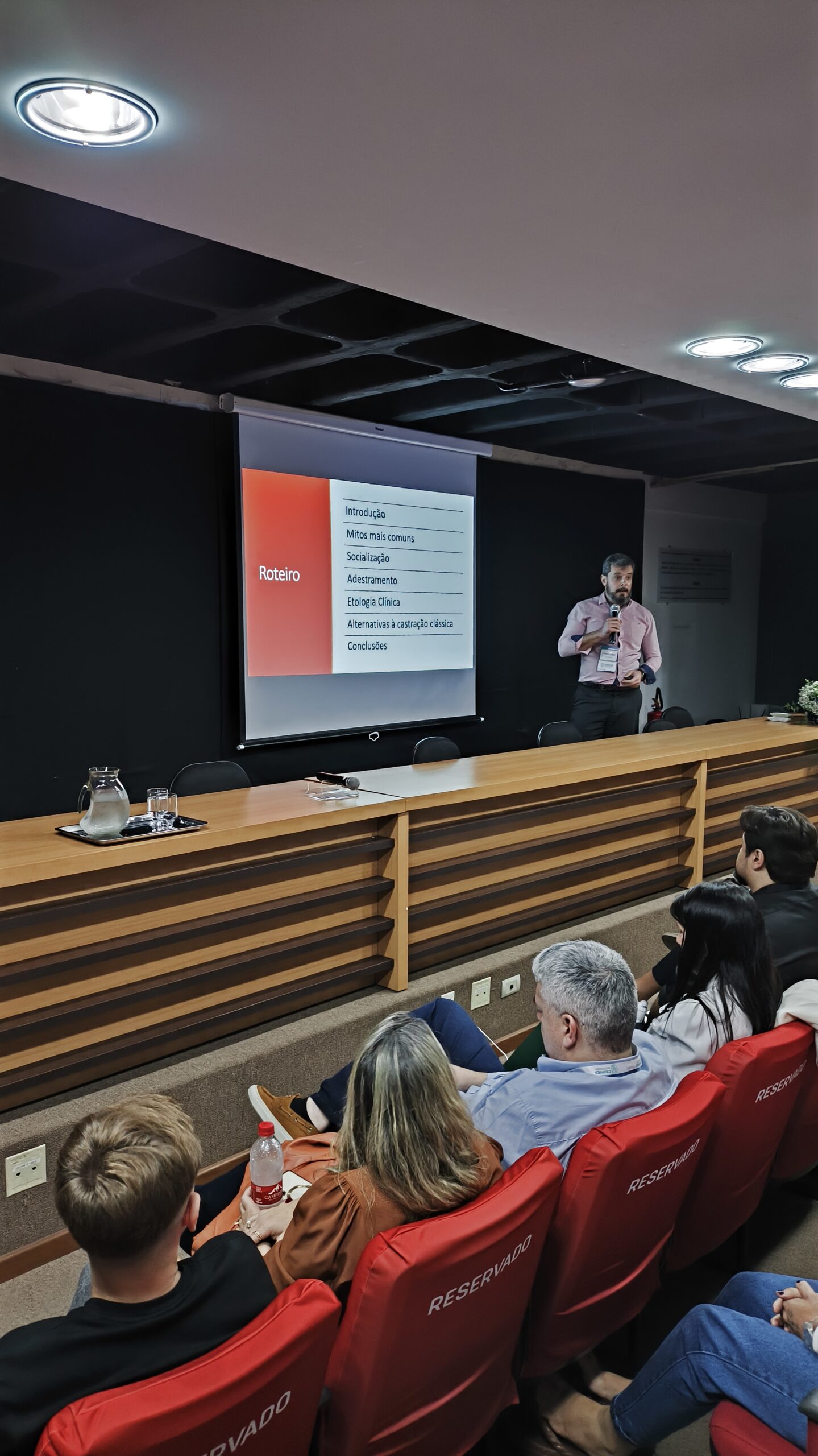 A programação incluiu palestras e debates conduzidos por profissionais reconhecidos nacionalmente, abordando aspectos clínicos, cirúrgicos, fisiológicos e comportamentais relacionados ao tema. Cada palestrante trouxe uma aula sobre o tema e instigou nos participantes importantes questionamentos sobre as indicações e contraindicações para o procedimento, que há anos tem sido muito comum na clínica de pequenos animais.
