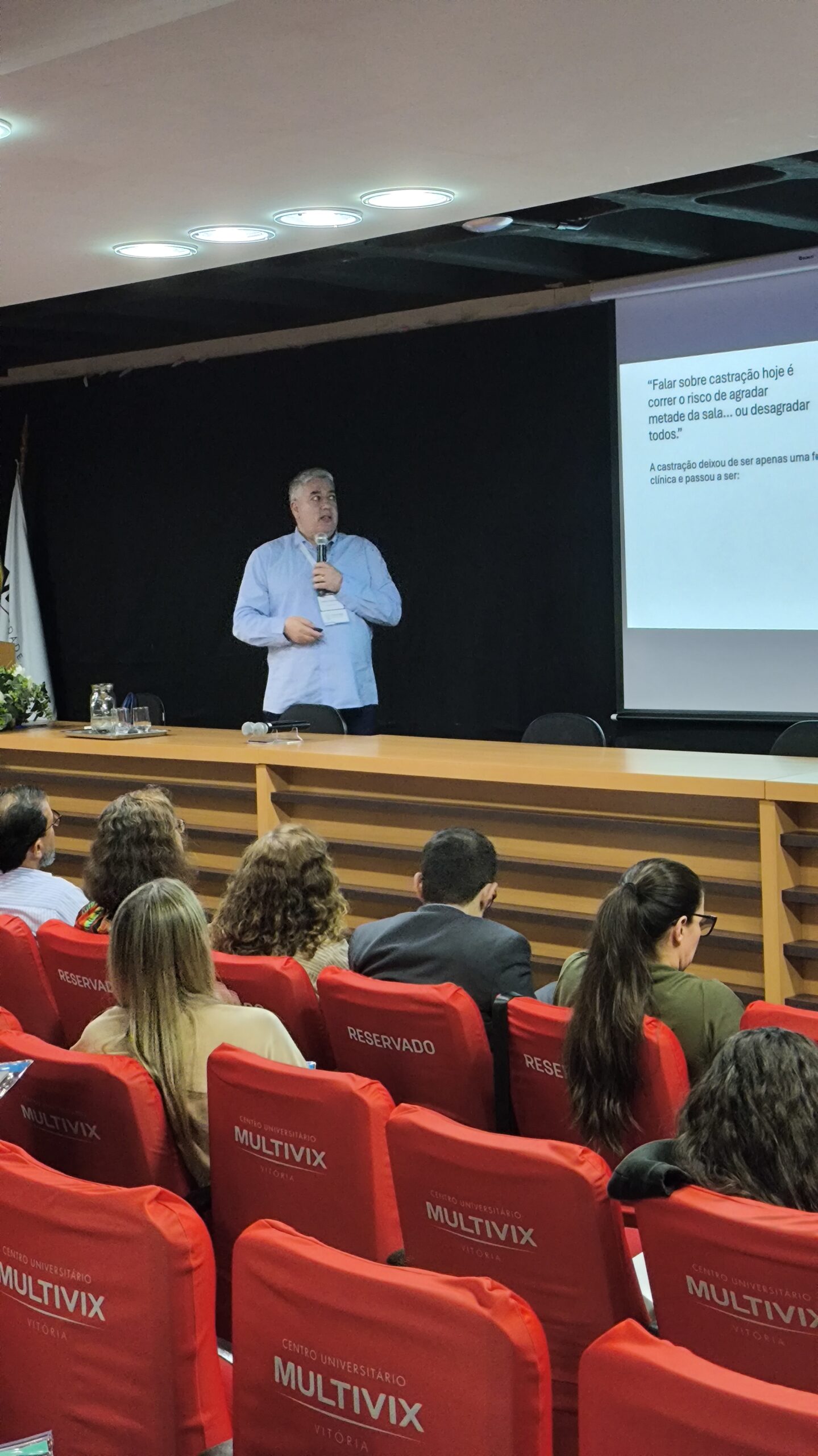 O Conselho Regional de Medicina Veterinária do Estado do Espírito Santo (CRMV-ES) realizou, no dia 31 de outubro de 2025, a I Conferência Estadual de Clínica e Cirurgia de Pequenos Animais, com o tema “Castração de cães e gatos – O que você precisa saber sobre o novo consenso de 2024”. O evento durou o dia todo, contou com palestrantes de outros estados e reuniu profissionais e estudantes da Medicina Veterinária de diversas regiões do Estado no auditório da instituição parceira, a Faculdade Multivix Vitória.